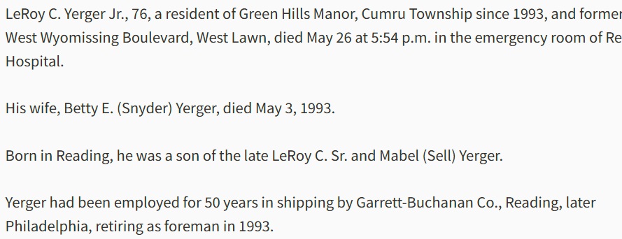 Leroy (Sonny) Yerger 1927-2004